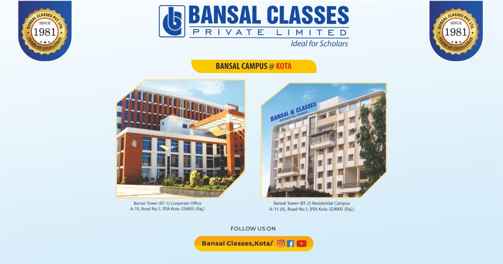 Pvt. Ltd. Kota Bansal ClassesBansal Classes Pvt. Ltd. Kota 9773343246 8003045222AddressBansal Campus, A-11 Road No. 1, IPIA Kota324005 Kota, Rajasthan, India